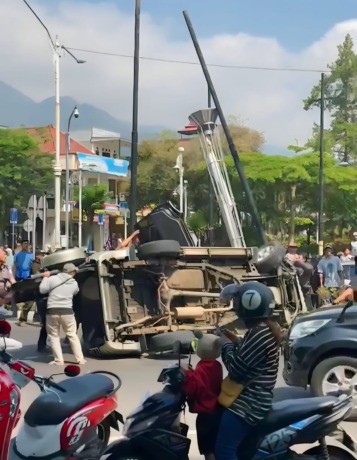 Mobil Isuzu Panther Nopol N1567K yang dikendarai Muhamad Ramli, 70, warga Desa Oro-Oro Ombo, Kecamatan Batu mendadak hilang kendali dan menabrak tiang lampu taman milik Dinas Lingkungan Hidup (DLH) di Jalan Diponegoro sekitar pukul 11.00 kemarin (26/5).